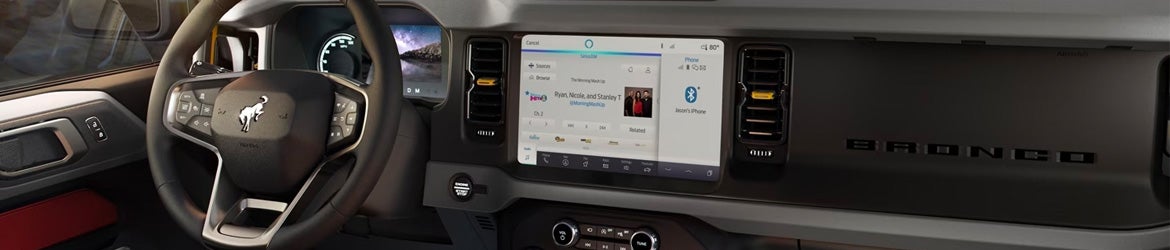 The new Ford Bronco gives vehicle aficionados a choice of nine trim levels, each boasting unique exterior features. The Big Bend stands proud on 17-inch carbonized gray-painted aluminum wheels and is outfitted with LED fog lamps, designed to effortlessly guide you through any weather conditions. The Black Diamond offers 17-inch black gloss-painted aluminum wheels and rock rails. The Outer Banks, with its 18-inch bright machined black high gloss-painted aluminum wheels and signature LED headlamps, is a nod to luxury as much as it is to performance.