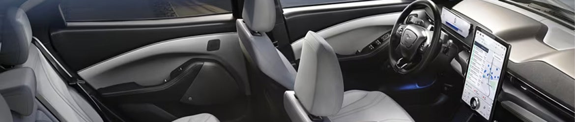 Inside, the 2024 Mustang Mach-E combines modern design, advanced technology, and creature comforts. A 15.5-inch touchscreen powered by Ford’s SYNC® 4A provides easy access to navigation and entertainment with smartphone connectivity, while a 10.2-inch digital cluster displays real-time driving data. The cabin offers comfortable seating with ActiveX™ upholstery and an available B&O Sound System makes every drive is a sensory delight. Practicality isn’t overlooked, with ample legroom for front and rear passengers and a fold-flat floor for easy cargo transport. The front trunk, or “frunk,” adds storage for smaller items to make your Mach-E as versatile as it is fun to drive.