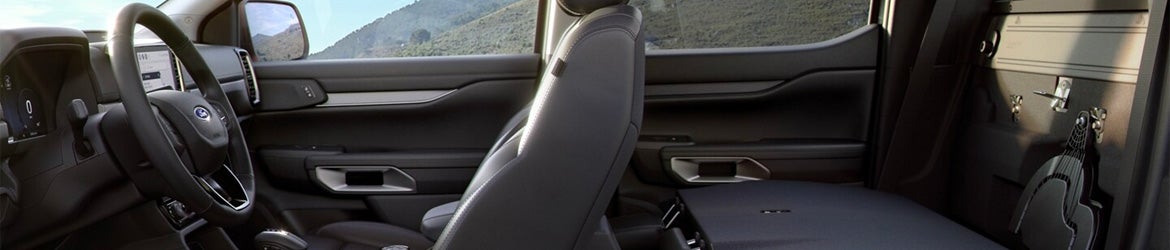 The 2025 Ranger has four trims: the XL, XLT, LARIAT, and Raptor. A redesigned front fascia gives each model a bold presence on the road, with LED reflector headlamps standard across all trims. The base XL features 17-inch wheels, while the XLT upgrades to available 18-inch wheels and adds power-folding mirrors for convenience. The LARIAT brings premium exterior elements, including LED signature lighting and body-color mirrors. The range-topping Raptor stands out with its distinctive grille design and wider stance.