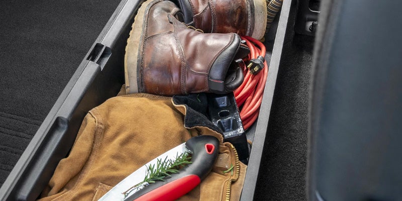 When properly equipped, the Super Duty achieves a maximum conventional towing capacity of 30,000 pounds and a maximum payload capacity of 8,000 pounds. The gooseneck towing capacity reaches up to 40,000 pounds for more demanding tasks. A 10-speed TorqShift automatic transmission comes standard across all models, delivering smooth power delivery and optimal gear selection. Testing has shown that an F-250 SuperCrew four-wheel drive with a diesel engine can accelerate from 0 to 60 mph in 5.5 seconds. The 8-foot cargo box provides 78.5 cubic feet of volume, measuring 98.1 inches long, 66.9 inches wide, and 21.1 inches tall.