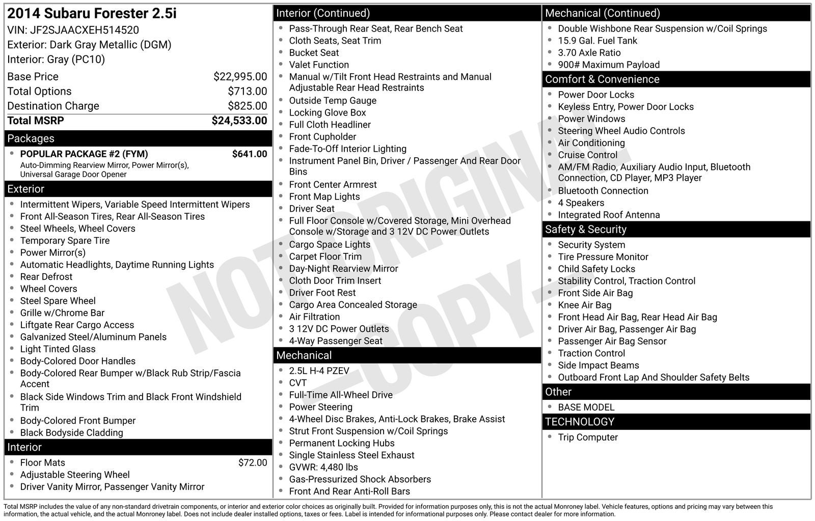 2014 Subaru Forester 2.5i Dark Gray Metallic AWD Lineartronic CVT 2.5L 4-Cylinder DOHC 16V VVT 24/32 City/Highway MPG
