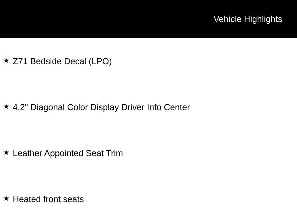 - Recovery hooks, front, frame-mounted, black (Included and only available with (Z71) Off-Road Package on 2WD models. Standard on 4WD models.) (Included and only available with (Z71) Off-Road Package on 2WD models. Standard on 4WD models.)