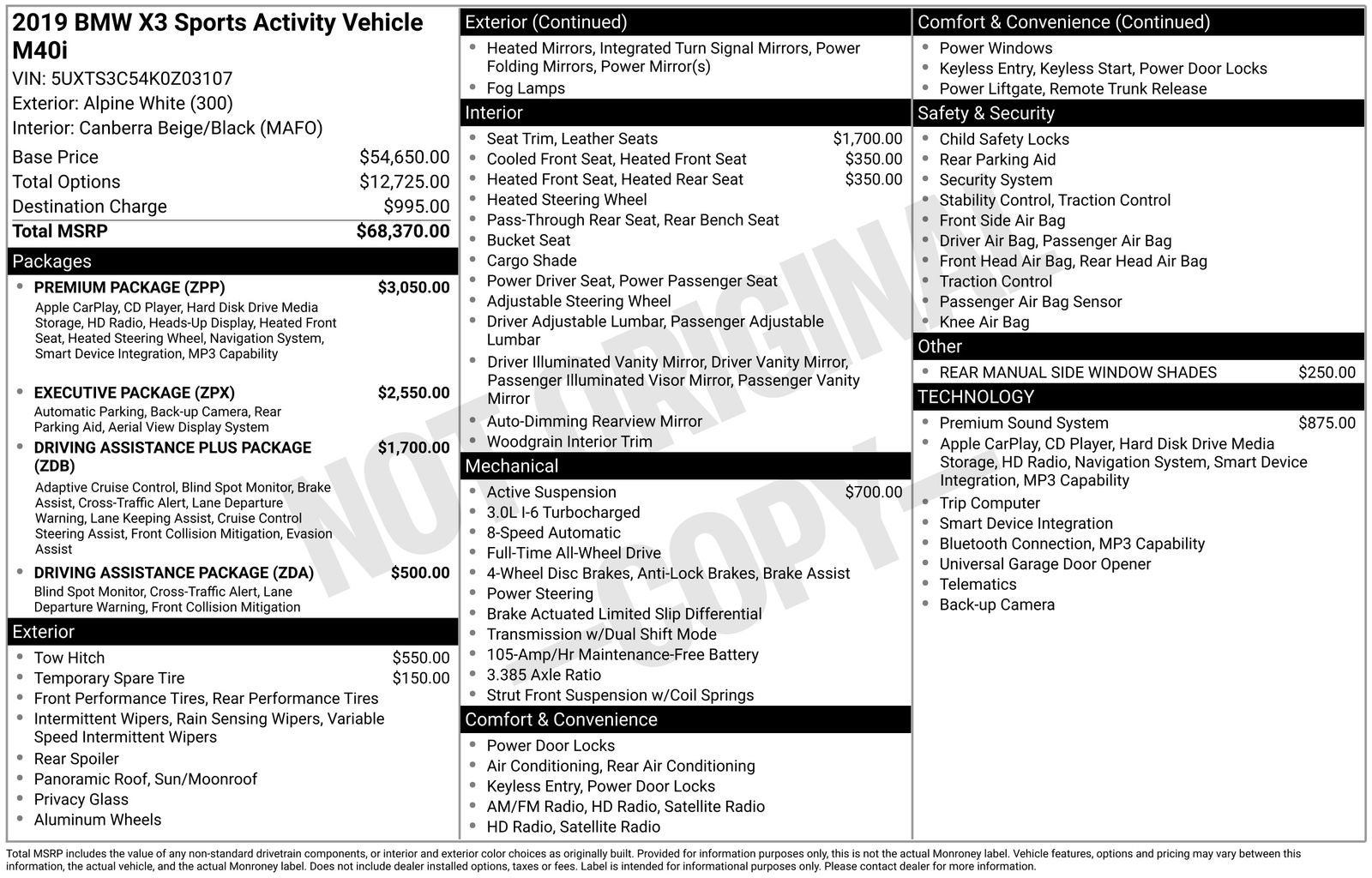 2019 BMW X3 M40i Executive Package
