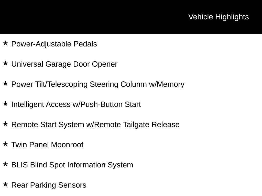 - Tailgate/Rear Door Lock Included w/Power Door Locks